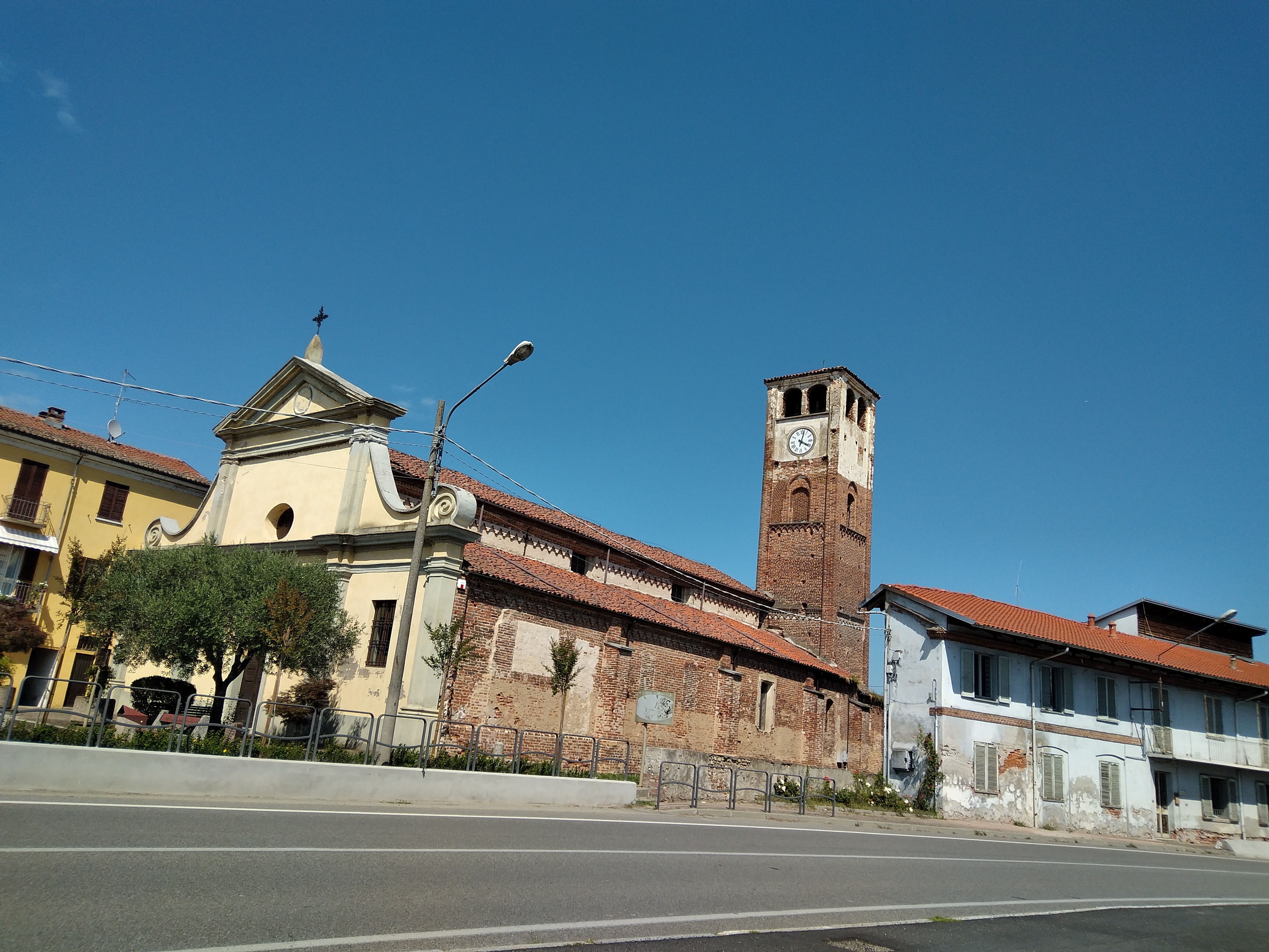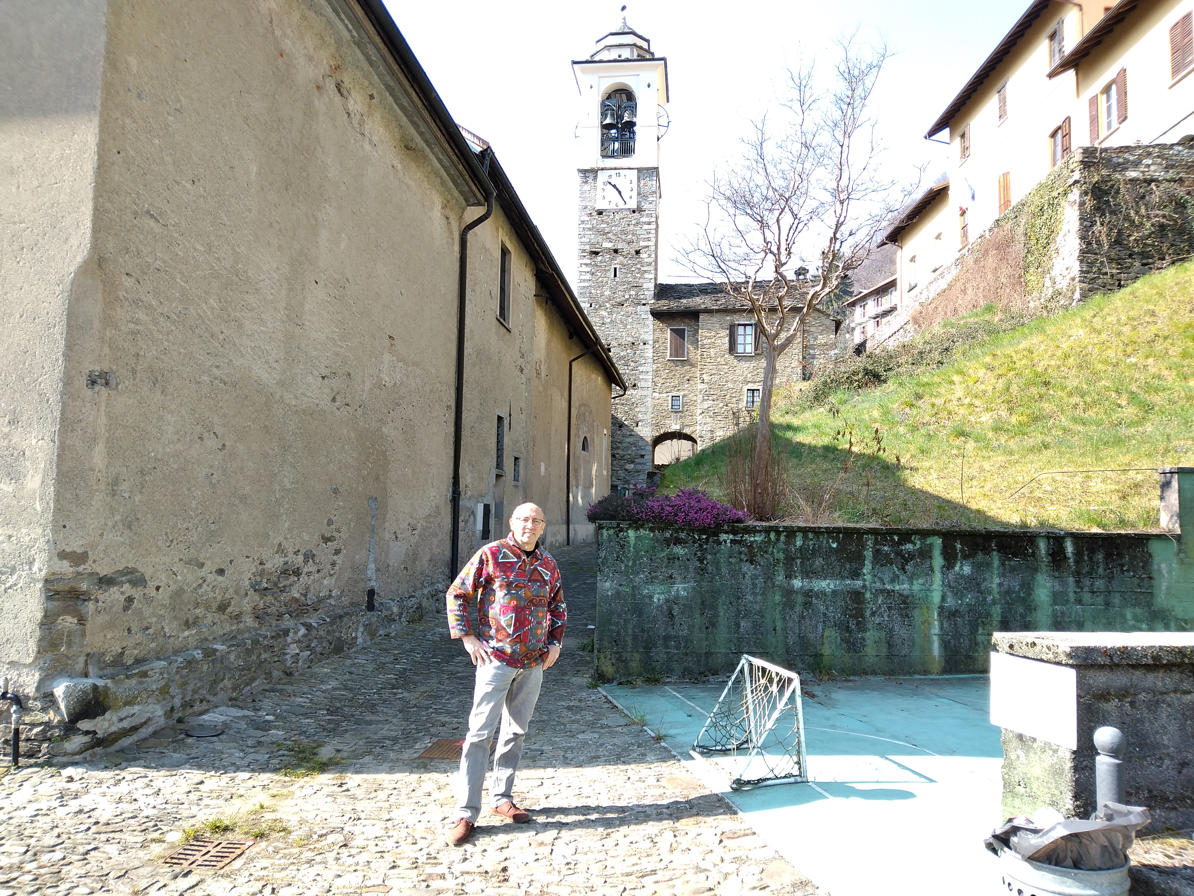 En arrière-plan, le clocher de l'église paroissiale de San Bartolomeo