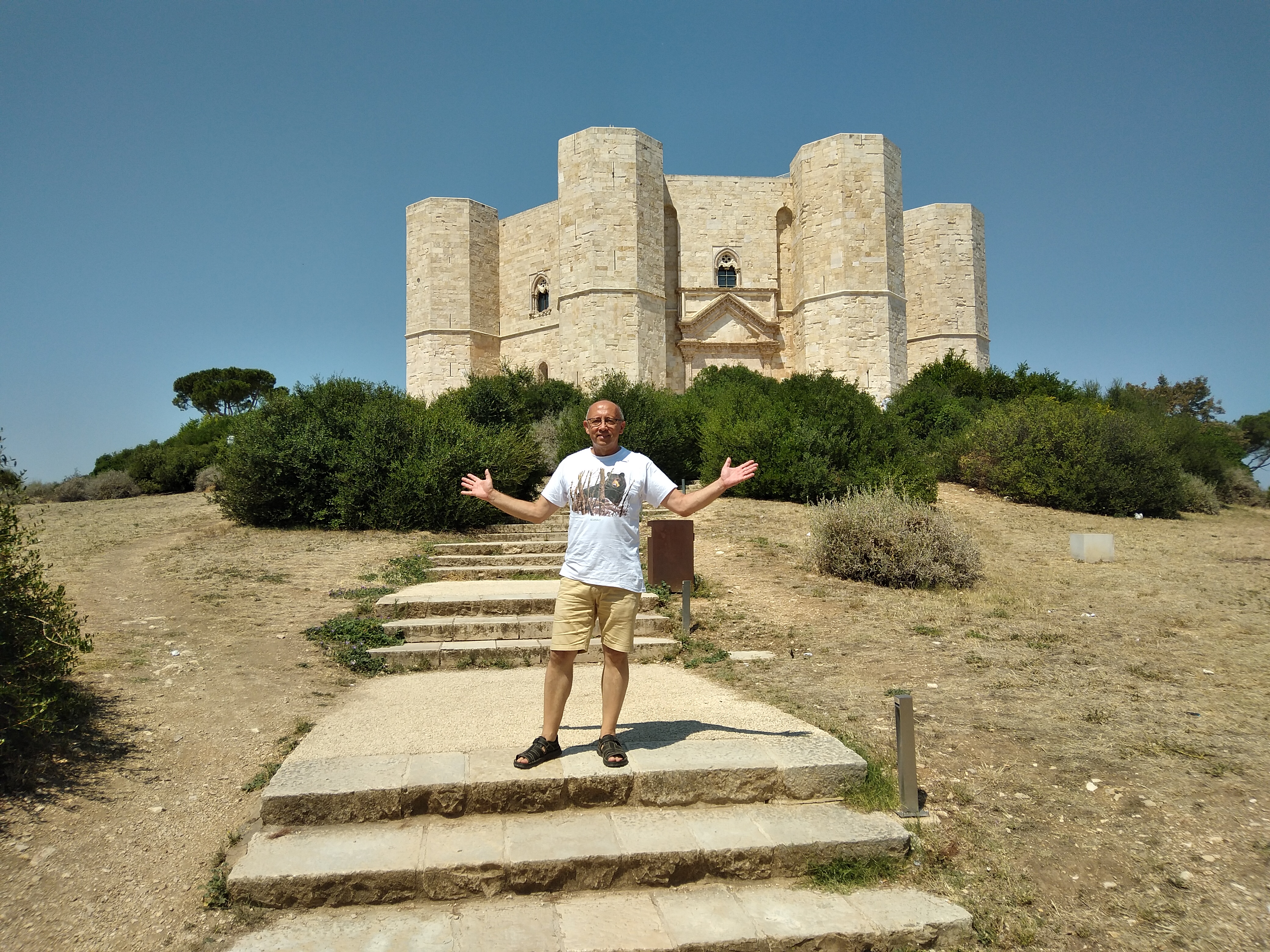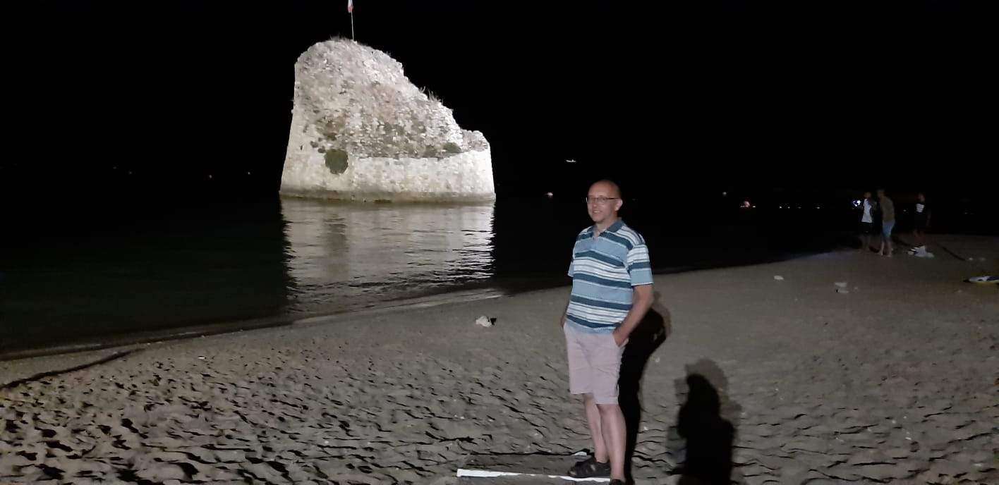 Depuis longtemps je rêvais de voir cet endroit et l’attente n’a pas été déçue. Je trouve heureusement un parking gratuit près du port, à deux pas du centre. Devant mes yeux, l’imposant Château Aragonais. Je franchis un pont-levis, passe les puissantes murailles et me retrouve plongé dans un dédale de ruelles grouillantes de monde. Je monte plus haut et, depuis l’un de ses bastions, où pendant des siècles on scrutait la mer à la recherche de navires ennemis, smartphone à la main, je cherche le meilleur cliché. La Cathédrale Sainte-Marie Annonciation, église qui conserve les reliques des martyrs qui, lors de l’invasion turque de 1480, refusèrent d’abjurer leur foi. Un peu plus loin en direction du port, je rencontre la encore plus belle Église Saint-Pierre, témoignage du passé byzantin de la ville. Dîner sur la terrasse d’un petit restaurant dans une ruelle du vieux bourg. Promenade du soir sur le front de mer ; je traverse la place avec au centre le monument aux Héros et j’entre par la Tour Alfonsina dans mon coin préféré. Des lumières tamisées donnent une atmosphère Renaissance aux murs du Château jusqu’à la Porta Terra, une fois franchie, on revient à la modernité. Tandis que les étoiles descendent illuminer la nuit d’Otrante, je suis tombé amoureux de cette ville au charme oriental, et on le sait, pour les amoureux, le ciel est toujours magnifique.